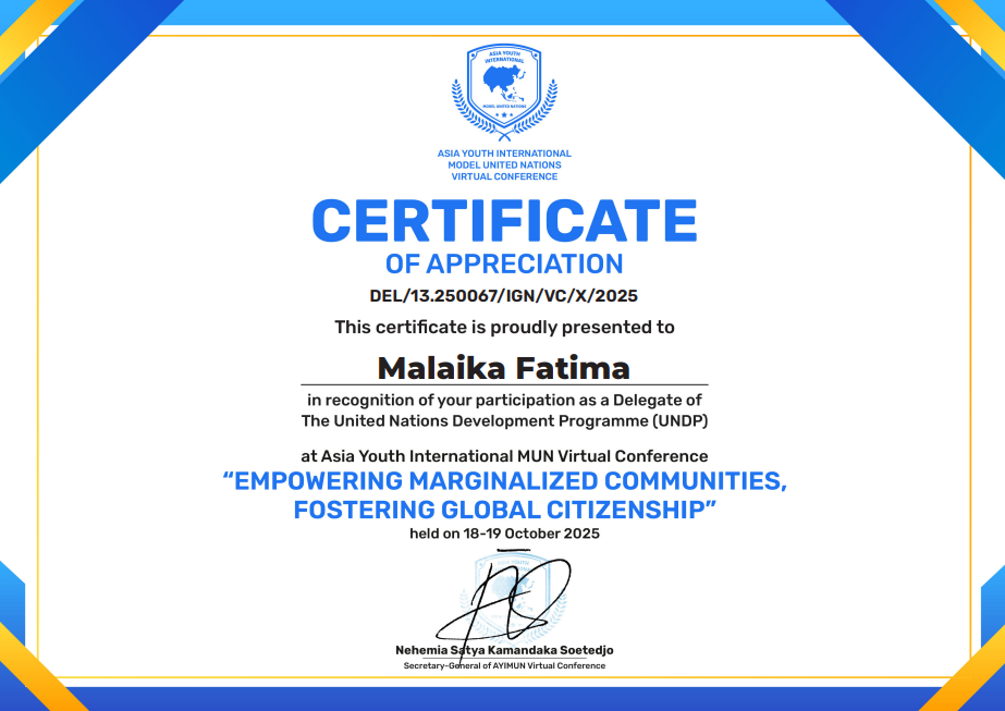 Outside of academics, I enjoy being creative and active. I’ve taken part in photography and art competitions, led my school’s drama society, and even learned horse riding and piano at an intermediate level. I’ve also joined Urdu debates, math competitions, and recently started learning French. I believe in growing as a person in every way—through learning, creativity, and new experiences.